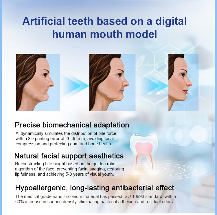 ✨ Dentist Recommended! AI Digital Customized Dentures, 3D Printing Error <0.05mm, Precise Fit Without Gum Damage! Medical-grade nano-zirconia material, hypoallergenic, antibacterial, and odorless, FDA/ADA dual certified. Suction cup fixation requires no glue, won't fall off even when chewing nuts! 😋 Rejuvenate your face by 5-8 years, say goodbye to protruding or sunken mouth! 50% OFF + Buy One Get One Free: $39 buy 1 get 1 free, $49 buy 2 get 2 free! 🚚 Free Shipping + 1-2 Day Shipping + 7-Day Appreciation Period + 100% Money-Back Guarantee, Zero Risk for a New Smile!