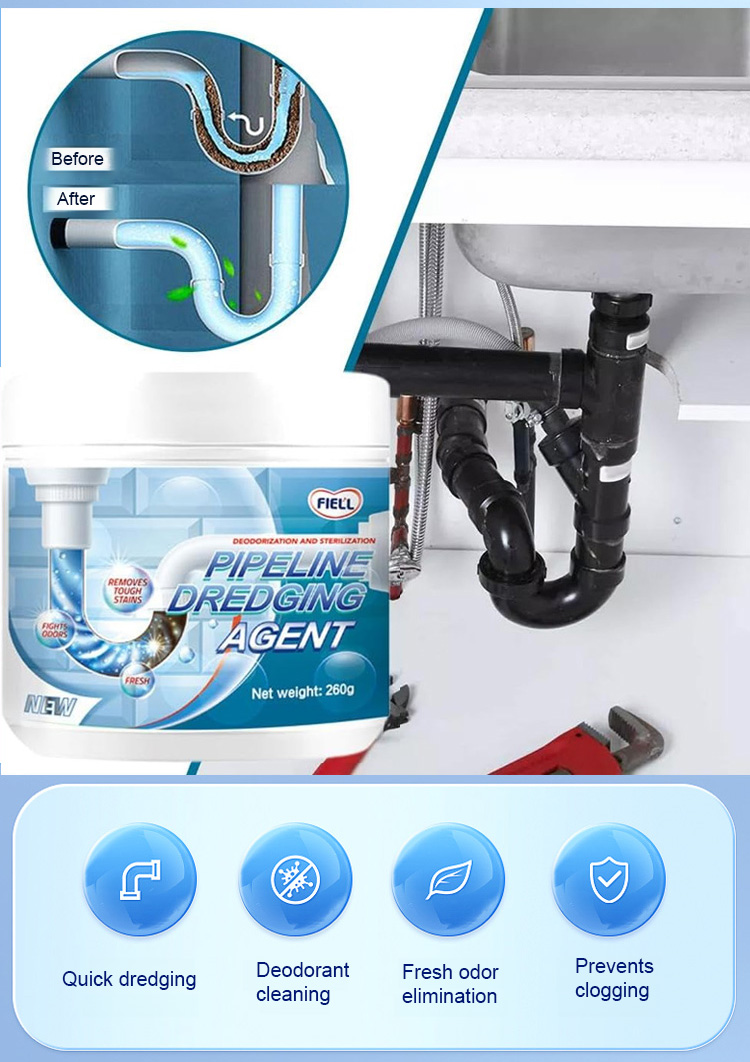 Whether it’s a clogged kitchen sink, bathroom drain, or shower pipe—this dredging agent gets the job done fast, safely, and affordably. Don’t waste money on costly plumbers or ineffective products!