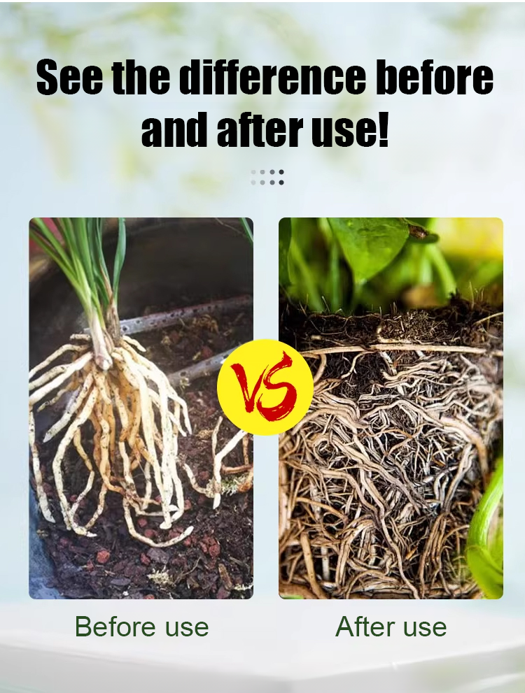 Revive dying plants & boost root growth ✨, dual active ingredients grow strong roots, 255% total nutrients activate soil without burning roots! No hormone added ✅, safe for all plants - flowers, succulents, veggies, hydroponics 🌿! Easy to use with free scoop, improves drought/flood resistance! Ships in 1-2 days, 7-day free return 🛡️, limited stock - GRAB YOURS NOW!
