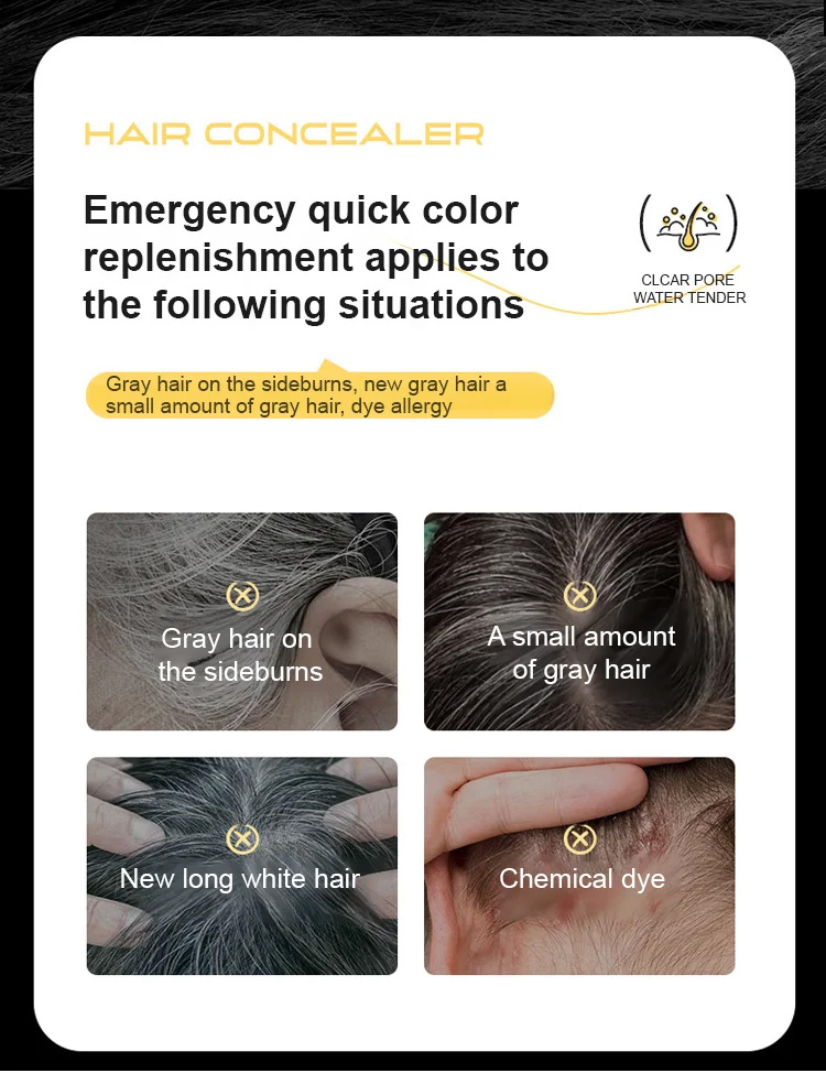 3-second coloring, waterproof, sweatproof, and gray hair covering hair dye stick